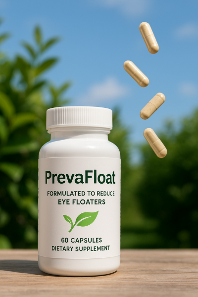 A targeted nutraceutical blend formulated to support healthy vitreous structure and help reduce visual distractions associated with common eye floaters. It combines proteolytic enzymes (bromelain, papain, ficin), N-acetyl cysteine, L-lysine and antioxidants to promote natural collagen balance and clarity. Unlike general eye vitamins, PrevaFloat’s enzyme-plus-antioxidant approach is specifically designed to support the breakdown of protein aggregates in the vitreous.
